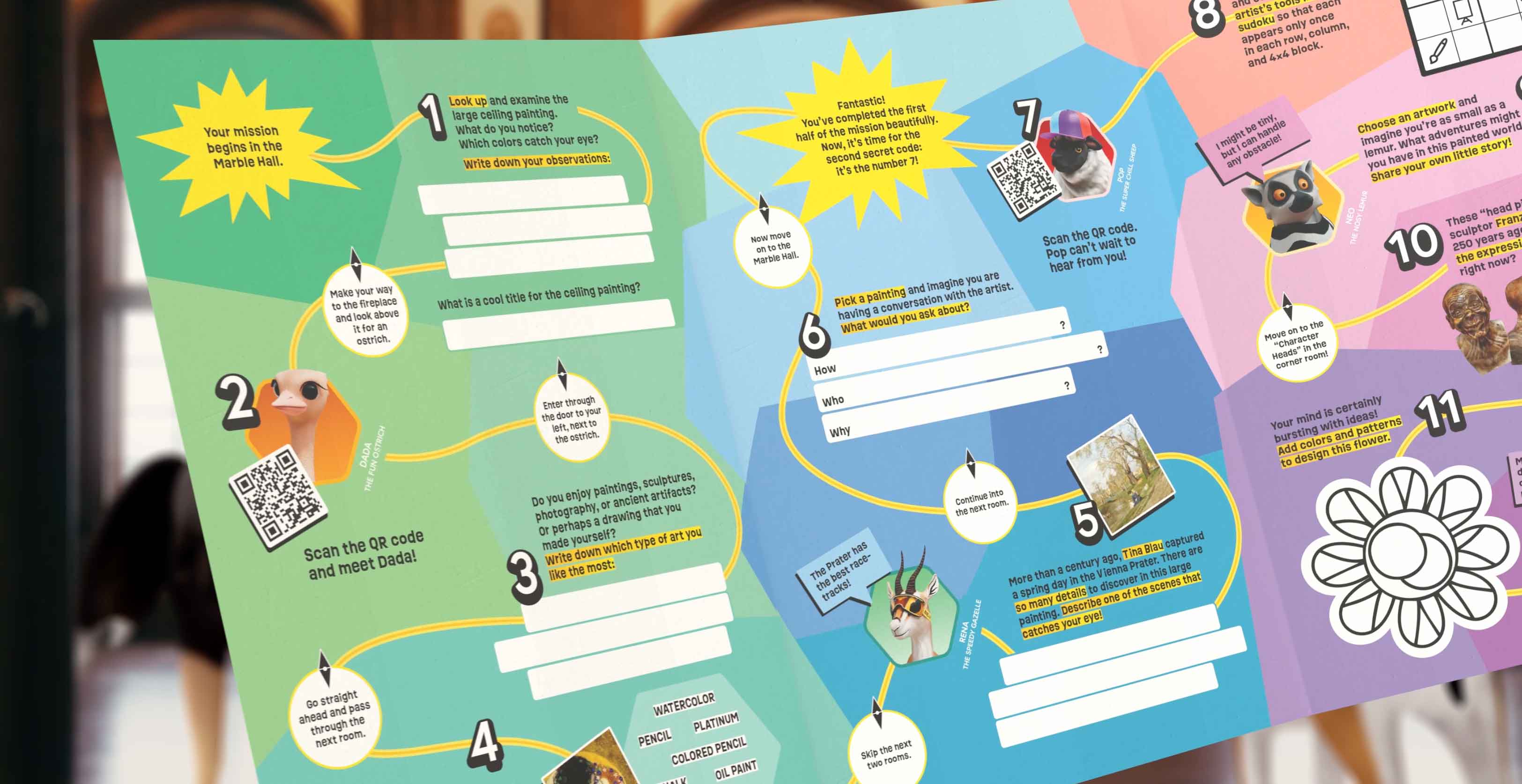 Following the success of The Fantastic Palastics garden game, Belvedere Museum Vienna wanted to continue engaging young visitors. This time, indoors. The Brand Father envisioned a hybrid experience where a printed map would guide children to digital AR interactions throughout the museum. We were asked to bring that vision to life.